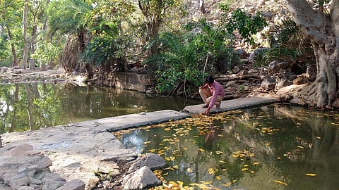 New red leaves are sprouting out of Dhaak (Butea monosperma/ flame of the forest) trees but the canopies of Kadam (Neolamarckia cadamba), Dhonk (Anogeissus pendula) and Khejri (Prosopis cineraria) are mature enough to merge and shield us from the harsh summer sun. Peacocks raise a ruckus as we drive towards the Hanuman temple in Jahaj region, north of Nandoo. The unmetalled road, full of rocks and shrubs, give way to moistened earth until it merges with water. This is the point of origin of Nanduwali river, which nourishes the farms and the wells of several villages in the region. Around 20 small streams join the river in its onward journey towards Manglasar dam.