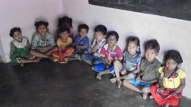 Children at an anganwadi centre, Mysore waiting for the mid-day meal