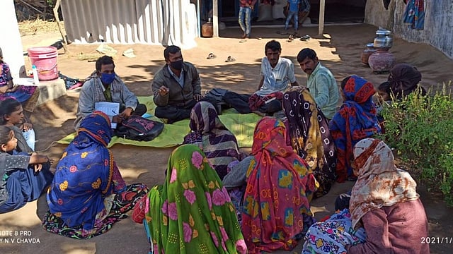 The existing layout of the villages, with their segregated arrangement, often leaves the vulnerable households behind. In Rapar and Bhachau blocks, the gram panchayats have many hamlets that are far away from the main village (8 to 10 km without proper roads). It becomes all the more difficult to get the families from these areas on board to access their basic entitlements.