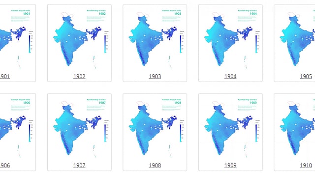Rainfall maps for the period of 100 years were created to see the changing patterns and differences over time.