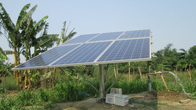 A solar water pump is used for extracting water from ponds, rivers, borewells or other sources of water which are then used to meet the water requirements for irrigation, community water supply, livestock and other purposes.