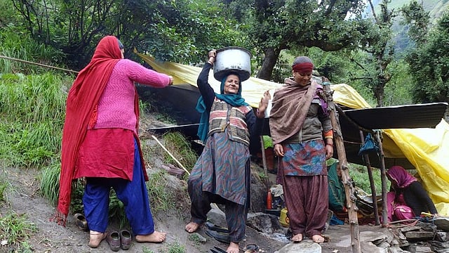 Until last month, this was the dharna (strike) site for around 60 Gaddi tribal women of Holi village protesting the 180 MW Holi-Bajoli hydropower GMR project. Around 70 km from the district headquarters of Chamba in Himachal Pradesh, this is also the site for the edit tunnel and powerhouse of the project. The women had been sitting here in shifts for over three months lest the construction and road work begin. As I write this, news came in that the dharna has been called off but not because the problem was resolved. Bureaucratic and political intimidation had silenced the villagers again even though the battle continued in the courts.