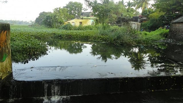 The tank bund too is weakened by encroachments. In fact, these encroachers have closed all the sluices and removed the structures from sluices. All the branch channels from sluices are completely occupied, and one cannot find even traces of these branch channels today. The tank bund road is made of concrete with no provision for water to be released from the sluices. The excess flow outlet ('kalingu' in Tamil) is the only means for water release from the tank. The entire rain water is expected to be drained only from this outlet. But the drainage is very bad and it ends abruptly after some distance. The drainage should have lead to the Adyar River, but here it is obstructed by encroachments including a National Highway bypass from Irumbuliyur to Maduravoil. Consequently, a new water body has appeared, with the heightened road as a bund, along the bypass road in private lands. This private land may be sold out as housing plots after sometime.