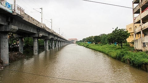 But the current plight of the canal is truly piteous. From its original width of over a 100 metres, the canal is constricted in several points to less than 30-or 40-metres wide. The elevated Mass Rapid Transit System (MRTS) that spans from Chennai beach in the north to Velachery in the south is almost entirely built on the canal banks. Pile foundations of the elevated tracks are laid right on or ridiculously close to the canal that the water flow through the channel is severely compromised.