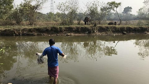 In both villages, construction for the water scheme is taking place on lands of deep cultural significance. In Giddhijhopri, a water treatment plant is being built at the Jaher Sthal, a hilltop where Santhal Adivasi villagers have for generations buried and cremated their dead, worshipped at a sacred grove, accessed medicinal plants, and used as pastureland for goats.