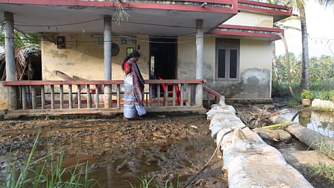 Ramani (70), who runs a tea shop has an analogous tale to share. A portion of her son's house sank into the canal running close to it, thanks to the increasing level of water and the salinity that eats into the walls of the houses. “Reconstructing the house is as difficult as living in it,” Ramani says. The septic tank in the house is built at a height of five feet fearing the septage would overflow during high tide.