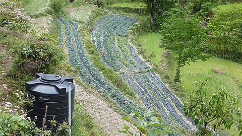 As Dr. Singh of HIMCON explained to me, "When you see a farmer doing so much on the barest of resources, it is a pleasure to be able to arrange for the little help he needs to make things possible". Of course, Soban did not stay idle till he could build those tanks. He would use a muti-patched length of pipe to carry water to the fields that were within his reach. The others he watered by hand.